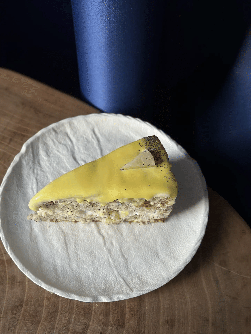 Ванильный маковый бисквит, крем на маскарпоне, кусочки ананаса, белый шоколад. Пропитан ананасовым соком с кокосовым молоком.